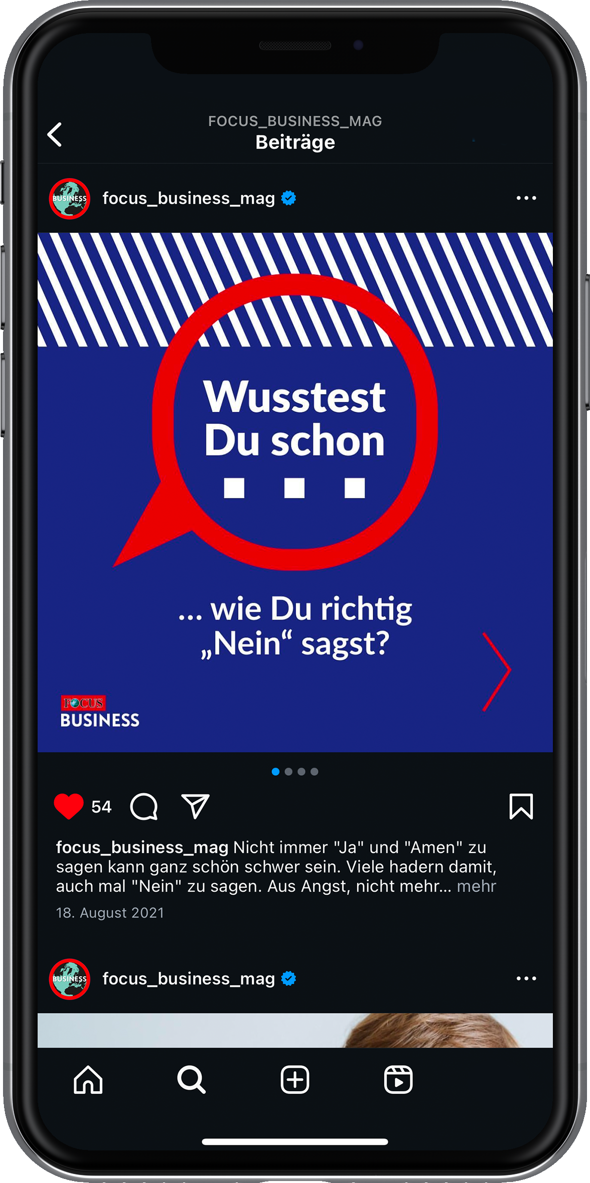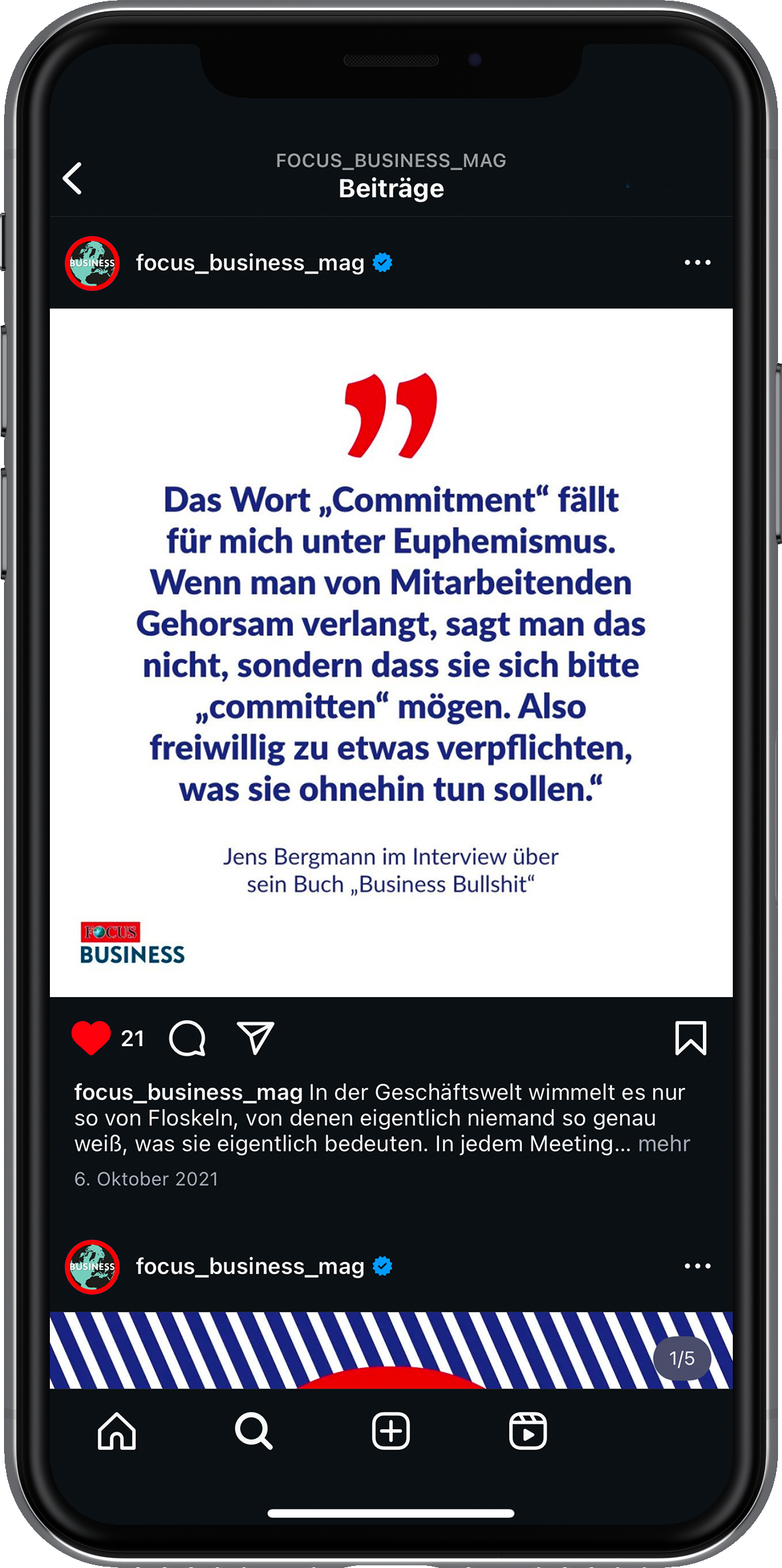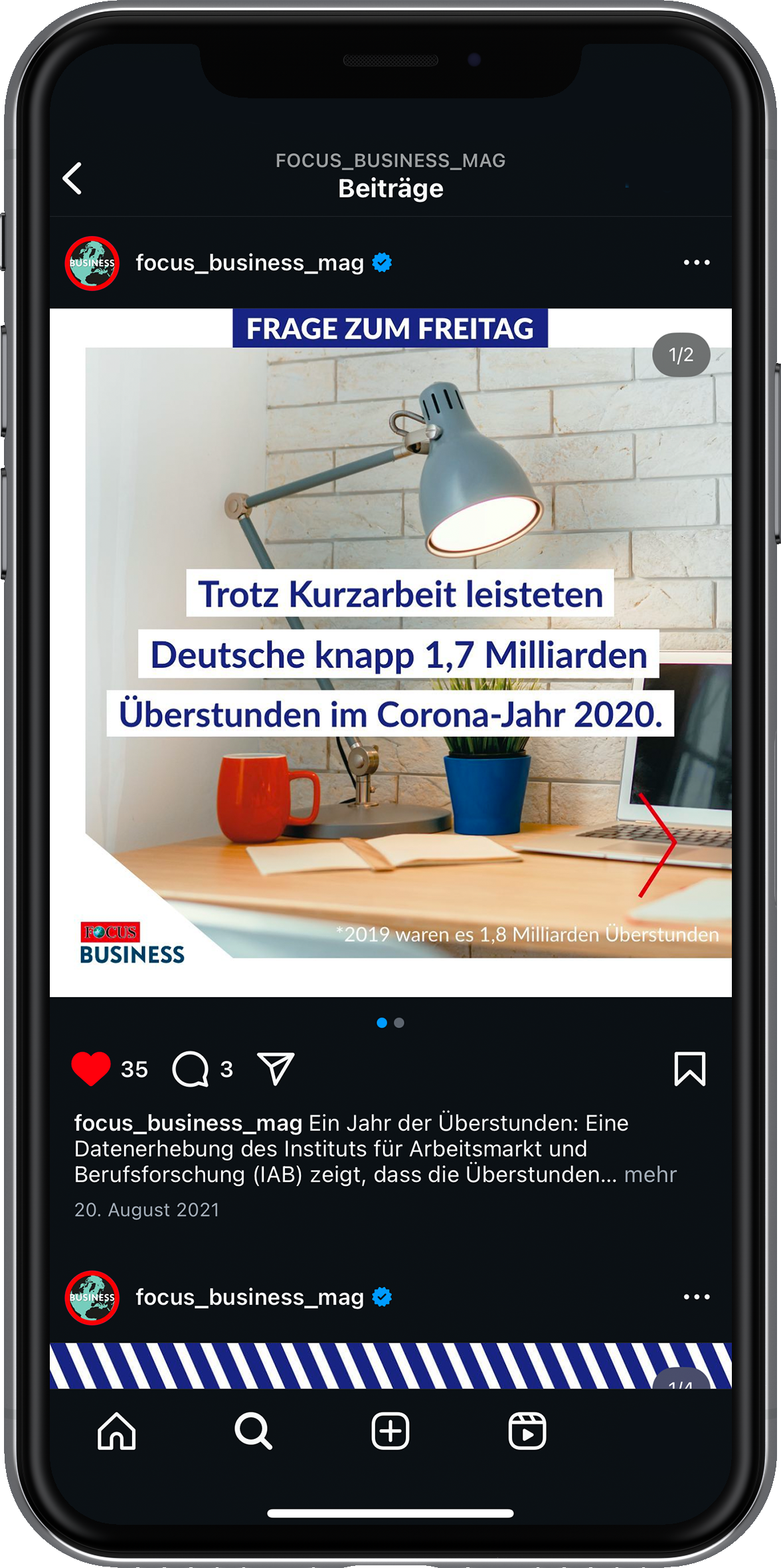 2021 durfte ich dem Instagram-Kanal von FOCUS Business einen umfassenden Refresh verpassen und ihn anschließend sechs Monate lang gestalterisch betreuen. Ziel war ein frischer, konsistenter Auftritt, der Business-Themen in snackable Formate übersetzt und klar auf die Zielgruppe ausgerichtet ist. Ich habe neue Content-Formate entwickelt, Grafiken gestaltet und die redaktionelle Planung mitverantwortet. Eine zentrale Herausforderung bestand darin, wirtschaftliche Inhalte nicht nur relevant und visuell ansprechend aufzubereiten, sondern sie auch gestalterisch so anzulegen, dass sie schnell und flexibel auf tagesaktuelle Themen reagieren konnten.