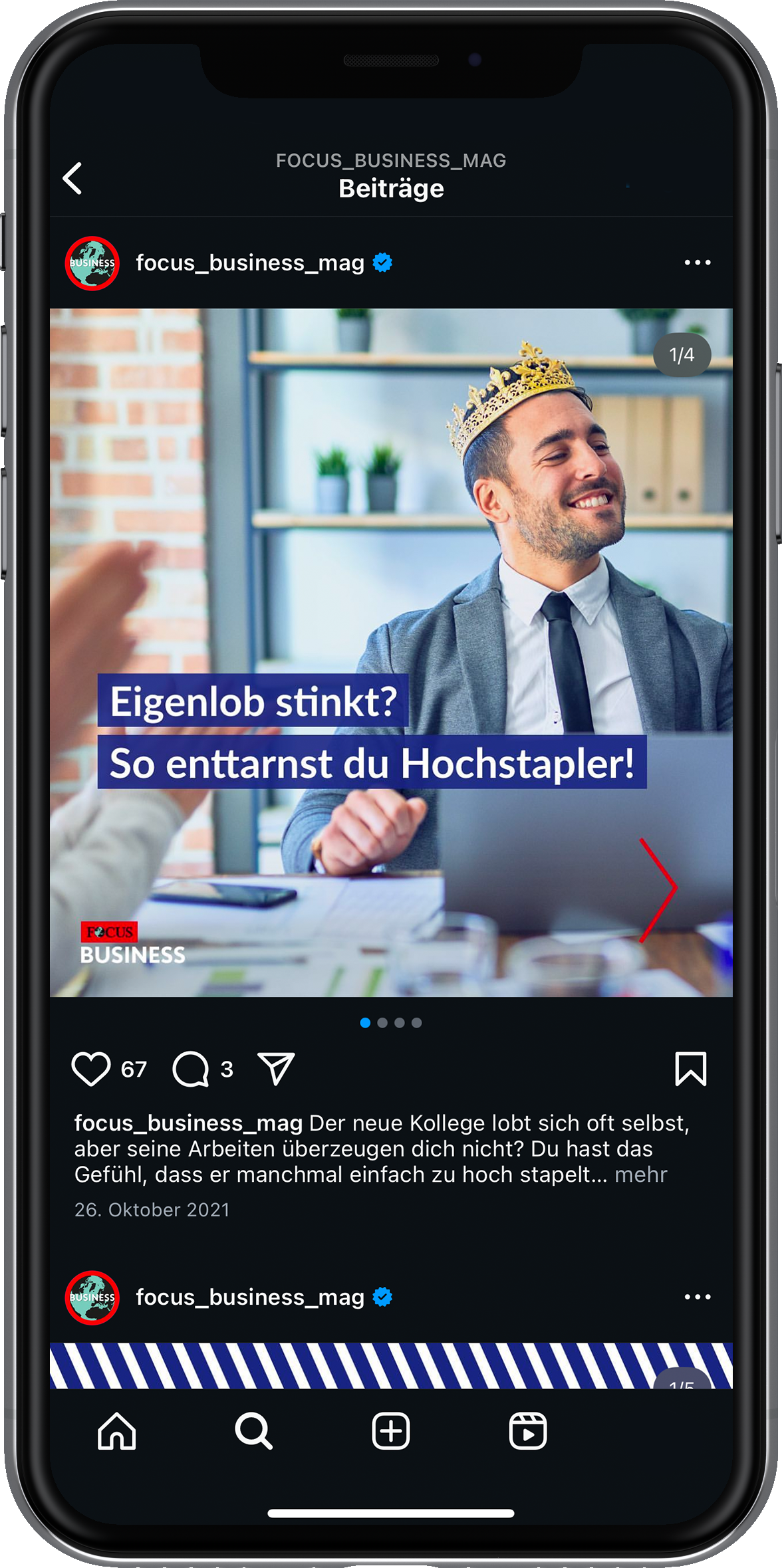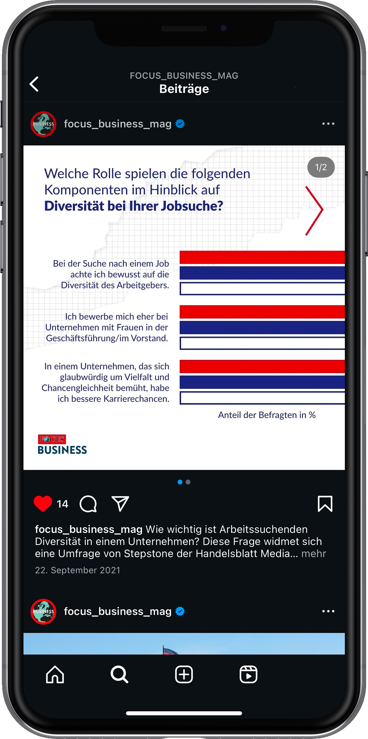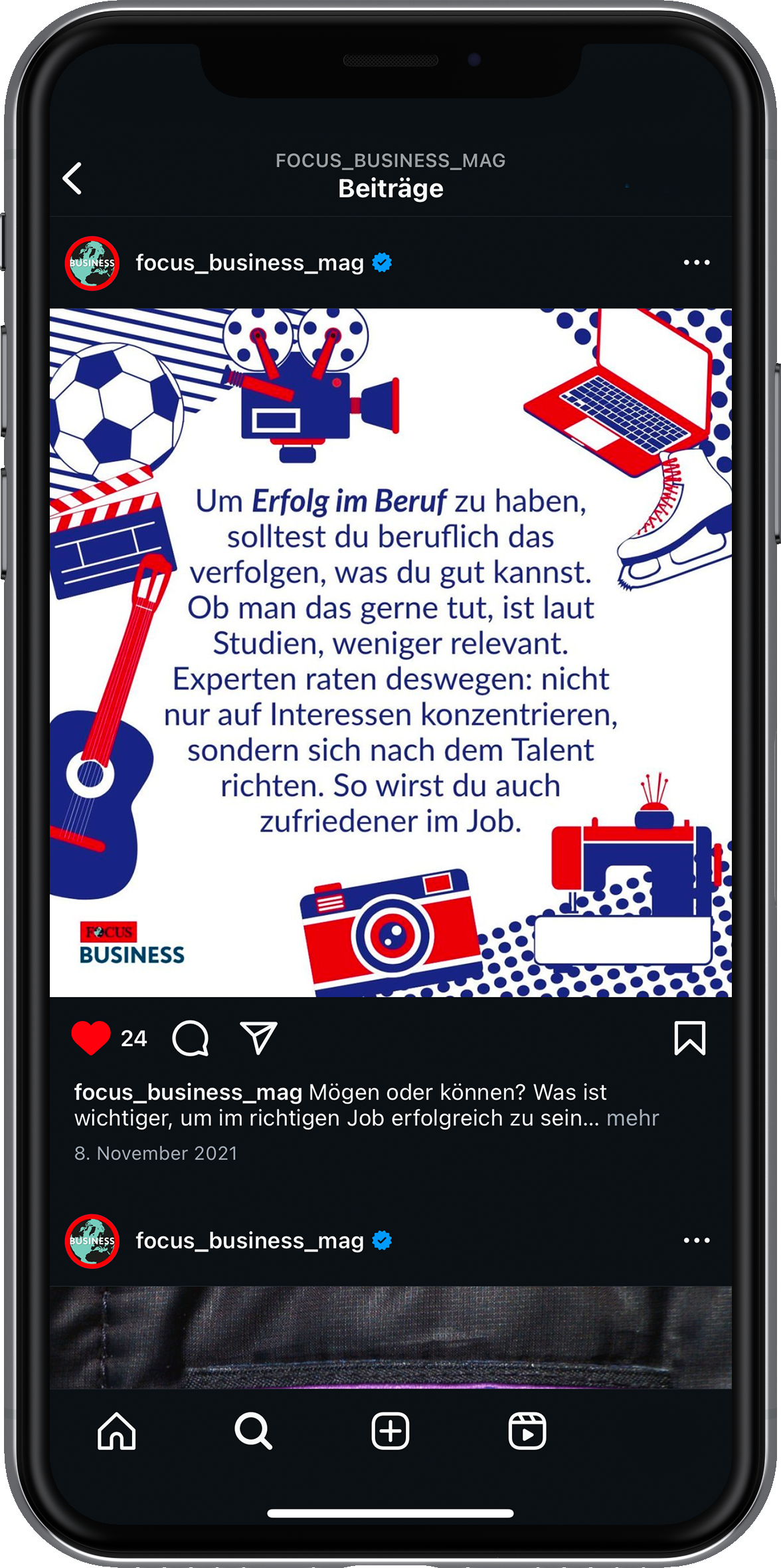 2021 durfte ich dem Instagram-Kanal von FOCUS Business einen umfassenden Refresh verpassen und ihn anschließend sechs Monate lang gestalterisch betreuen. Ziel war ein frischer, konsistenter Auftritt, der Business-Themen in snackable Formate übersetzt und klar auf die Zielgruppe ausgerichtet ist. Ich habe neue Content-Formate entwickelt, Grafiken gestaltet und die redaktionelle Planung mitverantwortet. Eine zentrale Herausforderung bestand darin, wirtschaftliche Inhalte nicht nur relevant und visuell ansprechend aufzubereiten, sondern sie auch gestalterisch so anzulegen, dass sie schnell und flexibel auf tagesaktuelle Themen reagieren konnten.